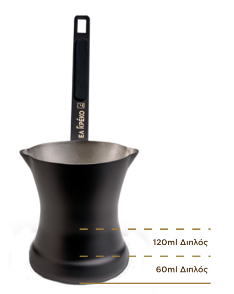 Ένδειξη δοσολογίας νερού για ευκολότερη παρασκευή μονού και διπλού ελληνικού καφέ.